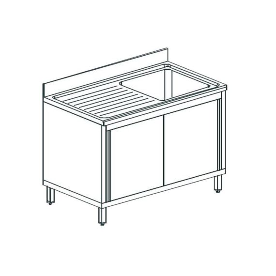 1000х600х900 мм, 1 ванна 500х400 мм, сушка слева, двери-купе, нерж сталь AISI 304