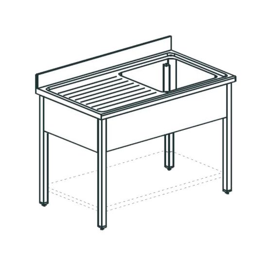 1000х600х900 мм, 1 ванна 500х400 мм, сушка слева, полка, нерж сталь AISI 304