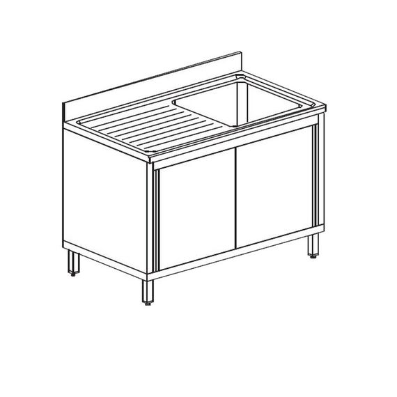 1400х700х900 мм, 1 ванна 500х500 мм, сушка слева, двери-купе, нерж сталь AISI 304