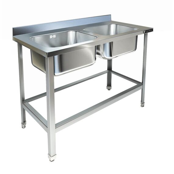 1200х700х850, ванна цельнотянутая из стали AISI 304 (2 емк.)500х500х300, каркас разборный, уголок из оцинкованного металла, толщиной 1,5 мм, рабочая поверхность из нержавеющей стали AISI 304 , толщиной 1 мм, борт плоский 70 мм, обвязка.