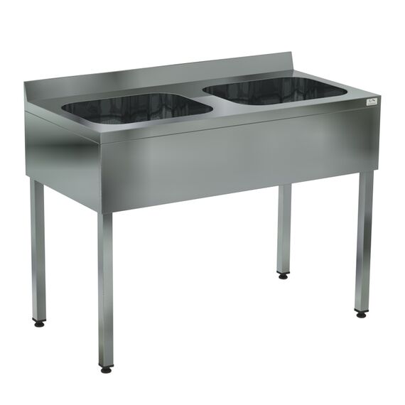 1400х700х870мм, Ванна моечная цельнотянутая двухсекционная (ёмкость - нерж. сталь. aisi 304, каркас нерж. труба 40х40, фартук с 4-х сторон), (ёмкость 600х500х300)