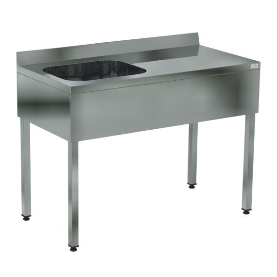 1200х600х870мм, Ванна моечная цельнотянутая односекционная с рабочей поверхностью (ёмкость - нерж. сталь. aisi 304, каркас нерж. труба 40х40, фартук с 4-х сторон), (ёмкость 500х400х250)