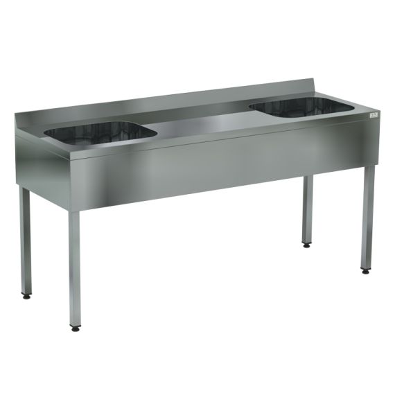 2100х700х870мм, Ванна моечная цельнотянутая двухсекционная с рабочей поверхностью (ёмкость - нерж. сталь. aisi 304, каркас нерж. труба 40х40, фартук с 4-х сторон), (ёмкость 600х500х300)