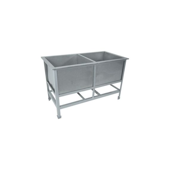 1000х530х850мм, Две сварные емкости размером 430х430х300 из нержавеющей стали марки AISI 304 толщиной 0,8мм. Каркас сварной из уголка 40х40 нержавеющей стали марки AISI 430 толщиной 2мм, внизу по периметру обвязка. Ванна комплектуется выпуском с нержавеющей решеткой и механическим запорным клапаном, диаметр выпуска 90мм, диаметр подключаемого сифона 50мм, регулируемые опоры. На дне ванны ребра (лучи) для жесткости и снижения вибрации. Ванна поставляется в собранном виде.