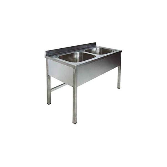 1400х700х850мм, Две цельнотянутые емкости размером 600х500х300 из нержавеющей стали марки AISI 304 толщиной 1мм, обнижение 2 мм. Объемный пристенный борт высотой 70мм. Фартук с 3-х сторон высотой 285 мм. Каркас сварной из трубы 40х40 нержавеющей стали марки AISI 304 толщиной 1,2мм, с тыловой части установлены две перемычки для жесткости. Ванна комплектуется выпуском с нержавеющей решеткой и механическим запорным клапаном, диаметр выпуска 90мм, диаметр подключаемого сифона 50мм, перелив, регулируемые опоры. На дно ванны нанесена виброшумоизоляция. Ванна поставляется в собранном виде.