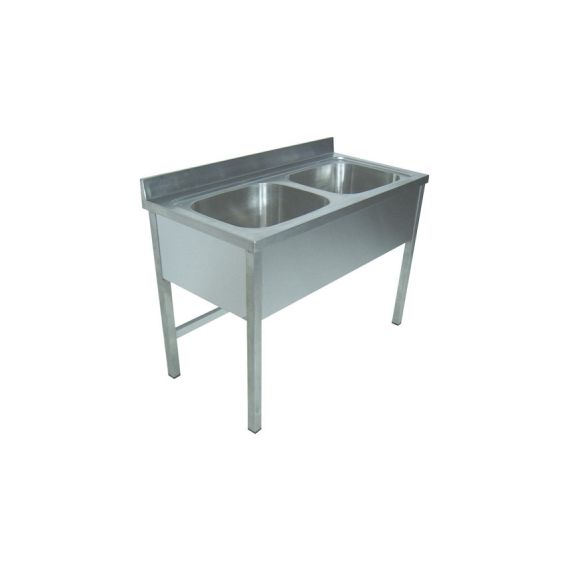 1400х800х850мм, Две цельнотянутые емкости размером 600х600х330 из нержавеющей стали марки AISI 304 толщиной 1мм, обнижение 2 мм. Объемный пристенный борт высотой 70мм. Фартук с 3-х сторон высотой 285 мм. Каркас сварной из трубы 40х40 нержавеющей стали марки AISI 304 толщиной 1,2мм, с тыловой части установлены две перемычки для жесткости. Ванна комплектуется выпуском с нержавеющей решеткой и механическим запорным клапаном, диаметр выпуска 90мм, диаметр подключаемого сифона 50мм, перелив, регулируемые опоры. На дно ванны нанесена виброшумоизоляция. Ванна поставляется в собранном виде.