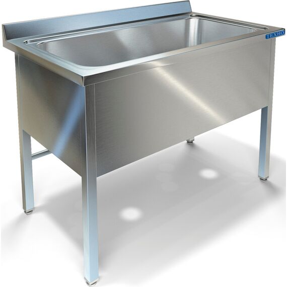 1400х700х850мм, Одна цельнотянутая емкость 1160х500х380 из нержавеющей стали марки AISI 304 толщиной 1мм, обнижение 15мм. Объемный пристенный борт высотой 70мм. Каркас сварной из трубы 40х40 нержавеющей стали марки AISI 430 толщиной 1,2мм, с тыловой части установлены две перемычки для жесткости. Перелив. Фартук с 3-х сторон высотой 285 мм. Ванна комплектуется выпуском с нержавеющей решеткой и механическим запорным клапаном, диаметр выпуска 90мм, диаметр подключаемого сифона 50мм, регулируемые опоры. На дно ванны нанесена виброшумоизоляция. Ванна поставляется в собранном виде.