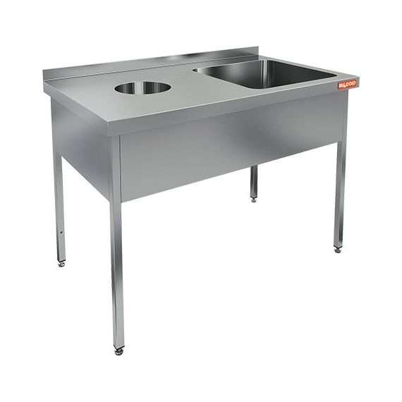 1200х600х850мм, НДСО1М-12/6БП стол-моечная ванна правая, 1 секц. (500х400х250), с левым крылом стола для отходов