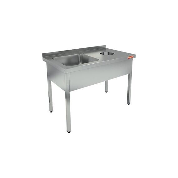1200х600х870мм, НДСО1М-12/6Л стол-моечная ванна левая без борта, 1 секц. (500х400х250), с правым крылом стола для отходов