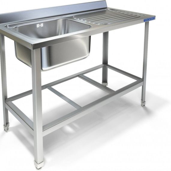 1400х800х850мм, Одна цельнотянутая емкость размером 600х600х330 из нержавеющей стали марки AISI 304 толщиной 1мм, ванна слева, обнижение 2мм, крыло плоское. Объемный пристенный борт высотой 70мм. Каркас сварной из уголка 40х40 нержавеющей стали марки AISI 304 толщиной 2мм, внизу по периметру обвязка. Ванна комплектуется выпуском с нержавеющей решеткой и механическим запорным клапаном, диаметр выпуска 90мм, диаметр подключаемого сифона 50мм, перелив, регулируемые опоры. На дно ванны нанесена виброшумоизоляция. Ванна поставляется в собранном виде.