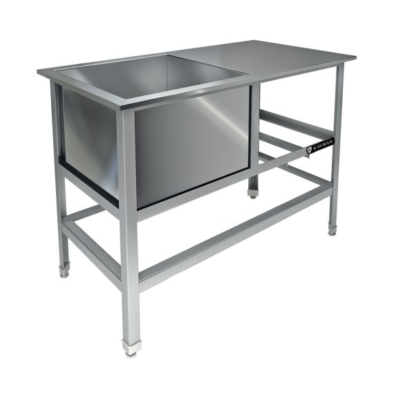1540х800х850, ванна сварная из стали AISI 304 (1 емк.)700х700х450, обвязка, каркас разборный, уголок из оцинкованного металла, толщиной 1,5 мм, рабочая поверхность из стали AISI 304 , толщиной 0,8 мм, ванна слева.