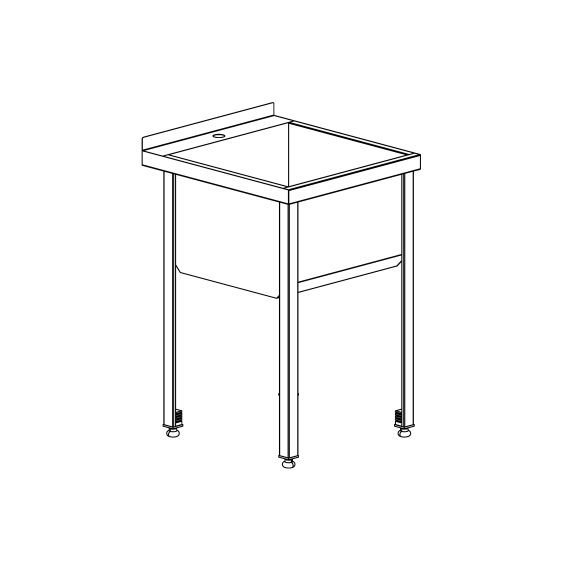 Ванна моечная с бортом односекционная. Емкость ванны сварная, выполненная из нержавеющей стали марки AISI 304, толщиной 0,8 мм. Имеет скошенное дно для удобства санитарной обработки. Размер секции - 400х400х350 мм. Имеет задний борт с отверстием под смеситель ф35 мм. Имеется отверстие для слива ф52 мм. Ножки съемные из оцинкованной стали толщиной 1,5 мм, с регулируемыми по высоте опорами. Смеситель и слив в комплект не входят.