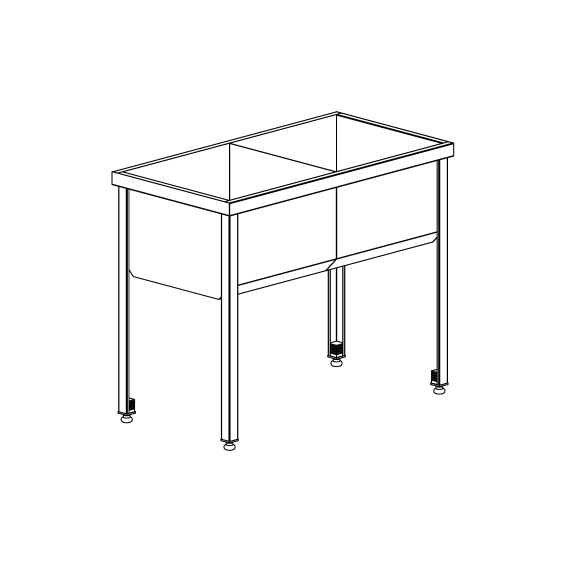 Ванна моечная без борта двухсекционная. Емкость ванны сварная, выполненная из нерж. стали марки AISI 304, толщиной 0,8 мм. Имеет скошенное дно для удобства санитарной обработки. Размер секции - 450х450х350 мм. Без заднего борта, без отверстия под смеситель. Имеется отверстие для слива ф52 мм. Ножки съемные из оцинкованной стали толщиной 1,5 мм, с регулируемыми по высоте опорами. Смеситель и слив в комплект не входят.