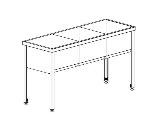 Ванна моечная без борта трёхсекционная. Емкость ванны сварная, выполненная из нерж. стали марки AISI 304, толщиной 0,8 мм. Имеет скошенное дно для удобства санитарной обработки. Размер секции - 400х400х350 мм. Без заднего борта, без отверстия под смеситель. Имеется отверстие для слива ф52 мм. Ножки съемные из оцинкованной стали толщиной 1,5 мм, с регулируемыми по высоте опорами. Смеситель и слив в комплект не входят.