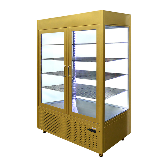 Витрина имеет две распашные двери для наполнения. Остекление с четырех сторон (стеклопакет).