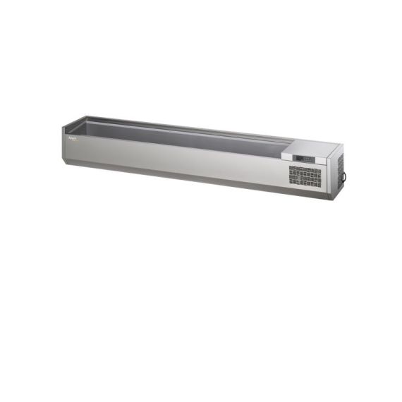 2005х322х275 мм, 55 кг, 0,25 кВт, 220 В, от + 2 до +10С, нерж сталь AISI 304, толщина изоляции 30 мм, без стеклянной крышки, R290, гастроемкости GN1/4 (опция), с агрегатом