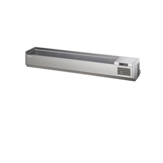 2005х322х275 мм, 50 кг, 0,25 кВт, 220 В, от + 2 до +10С, нерж сталь AISI 304, толщина изоляции 30 мм, без стеклянной крышки, R452a, гастроемкости GN1/4 (опция), без агрегата