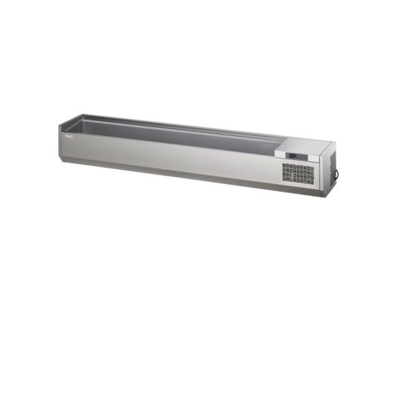 2005х380х275 мм, 50 кг, 0,25 кВт, 220 В, от + 2 до +10С, нерж сталь AISI 304, толщина изоляции 30 мм, без стеклянной крышки, R452a, гастроемкости GN1/3 (опция), без агрегата