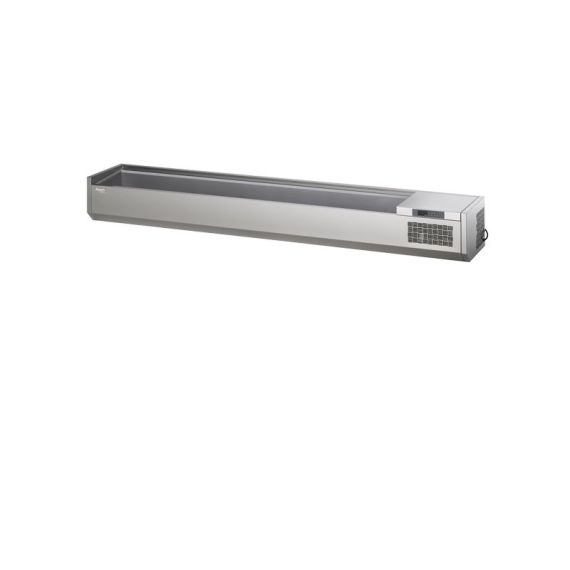 2350х380х275 мм, 55 кг, 0,25 кВт, 220 В, от + 2 до +10С, нерж сталь AISI 304, толщина изоляции 30 мм, без стеклянной крышки, R452a, гастроемкости GN1/3 (опция), без агрегата