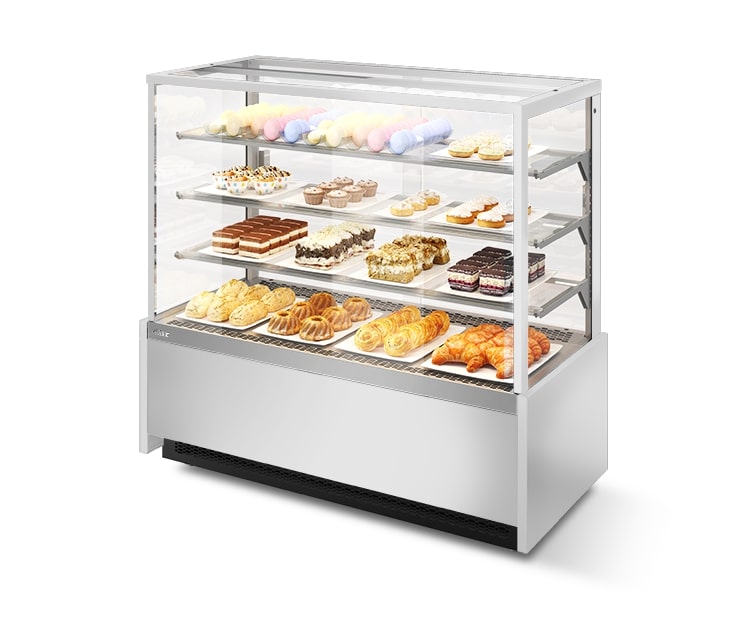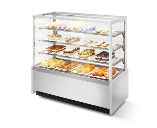 ВИТРИНА КОНДИТЕРСКАЯ VETE KUB 130 БЕЛЫЙ ГЛЯНЕЦ/ШЛИФОВАННАЯ НЕРЖАВЕЙКА
