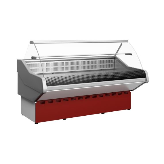 1800х1090х1170, t режим 0…+7 C. Витрина холодильная, (0…+7C),со встроенным агрегатом, гнутое стекло, 1 стеклянная полка, полезный объем — 0,42м3,охлаждаемая площадь поддонов для выкладки продуктов-1,3 м2, статическое охлаждение, раздвижные задние шторки, оттайка естеств. теплопритоками, потр. эл.энергии в сутки —5,2кВт, 120кг, R290, цвет корпуса — серый, экспозиционные поверхности — отделка под серебро, 30Вт, 220В, щиток в комплект не входит.
