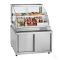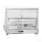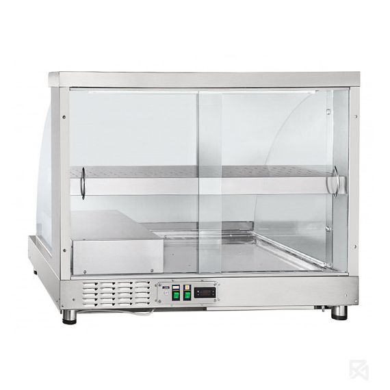Витрина настольная Abat ВХН-70-01 предназначена для демонстрации, хранения и поддержания в охлажденном состоянии различных продуктов, холодных закусок и третьих блюд, выкладываемых непосредственно на перфорированную полку или функциональные емкости и реализации их потребителю.Полка, стойки и основание витрины выполнены из нержавеющей стали AISI 304 толщиной 1 мм.Возможна установка витрины в составе линии раздачи или в непосредственной близости от кассовой стойки.ОСОБЕННОСТИ:Климатический класс изделия - 4Динамическое охлаждение - воздухоохладитель с вентилятором для равномерного распределение температуры внутри полезного объемаРегулируемые по высоте ножкиЭлектронный блок управления с возможностью регулирования и поддерживания необходимой температурыХолодильный агрегат на основе компрессора DanfossХладагент: R404aОбщая масса хладагента: 0,28 кгДиапазон регулирования температуры в витрине: +5…+15°СРабота при температуре окружающей среды от +12 до +32°СПолезный объем витрины: 0,27 м³Естественная оттайкаДве раздв