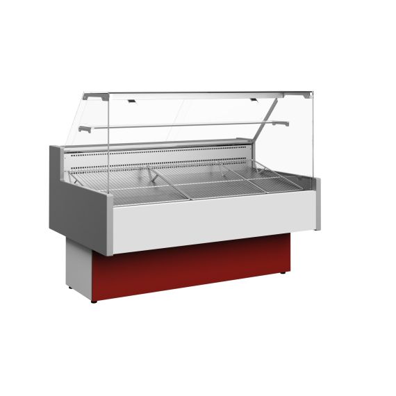 1470х960х1190, t режим 18...-12 C. Витрина холодильная, (18...-12 C),со встроенным агрегатом, прямое стекло, 1 стеклянная полка, полезный объем — 0,13м3,охлаждаемая площадь поддонов для выкладки продуктов, 0,9 м2, статическое охлаждение, раздвижные задние шторки, оттайка ТЭН, потр. эл.энергии в сутки —10,5кВт, 140кг,, цвет корпуса — серый, экспозиционные поверхности — отделка под серебро, 30Вт, 220В, щиток в комплект не входит.