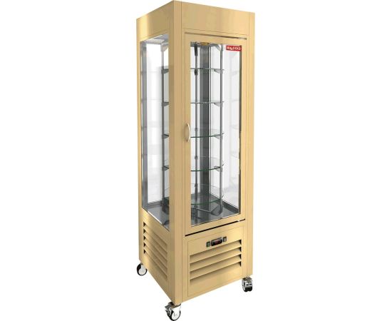 600х600х1950мм, VRC 350 R Beige витрина охл. кондитерская., вращ. полки, на колёсах, бежевая, рамка в тон