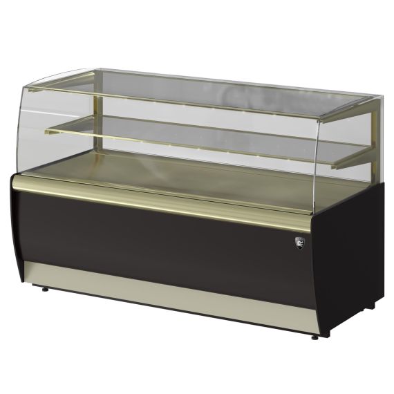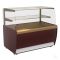 1370х650х870, t режим +6+12 С. Витрина кондитерская, (+6…+12С), 1 стеклянная полка (1310х350), размер выкладки: 1310*440, вентилируемое охлаждение, раздвижные задние створки из оргстекла, подсветка LED тепло-белая, потр. эл.энергии 6,5кВтч/сутки, R134а, цвет корпуса: коричневый/золото, 220В, 0,7кВт