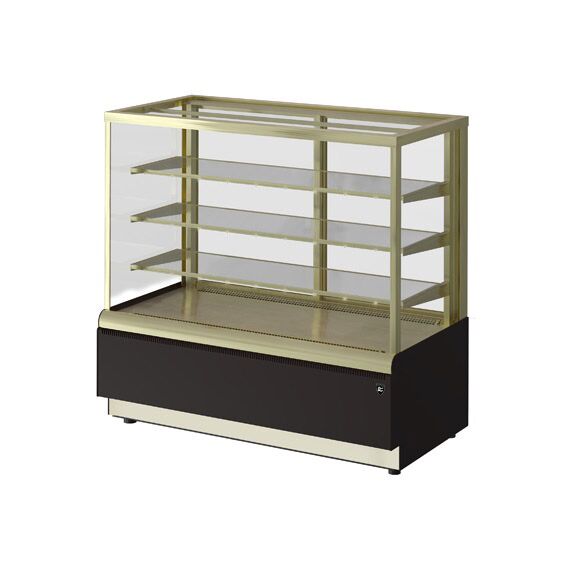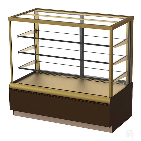 900х700х1280, t режим …0+7 С. Витрина кондитерская, (0…+7С), стеклопакет, 3 стеклянные полки (830х350мм) с LED подсветкой свет тепло-белый, размер выкладки - 868*460мм, вентилируемое охлаждение, раздвижные задние шторки, автоматическая оттайка/ТЭНы, выпариватель, потр. эл.энергии 7кВтч/сутки, вес нетто 140кг, R134а, цвет корпуса:коричневый/золото, 220В, 7кВт/сутки