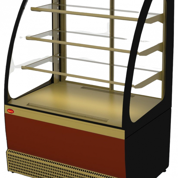 950х740х1265 Витрина неохлаждаемая, 3 стеклянных полки, полезный объем —0,25 м3, неохлаждаемое, раздвижные задние шторки, цвет корпуса —черный, экспозиционные поверхности — отделка под золото 14,4Вт, 220В.