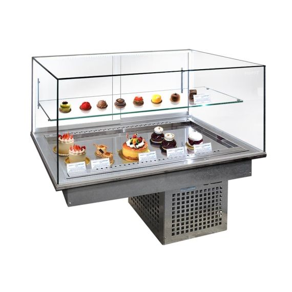 Данная витрина предназначена для экспозиции и кратковременного хранения десертов и кондитерских изделий. Может монтироваться в столешницу из любого материала. Выкладка продуктов для демонстрации осуществляется на стеклянную полку и дно витрины. Купол витрины имеет большую площадь остекления, что помогает гостям беспрепятственно разглядеть товар со всех сторон.