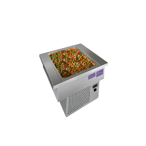 Встраиваемая холодильная ванна выполнена из высококачественной пищевой нержавеющей стали. Снабжена самостоятельной холодильной установкой.