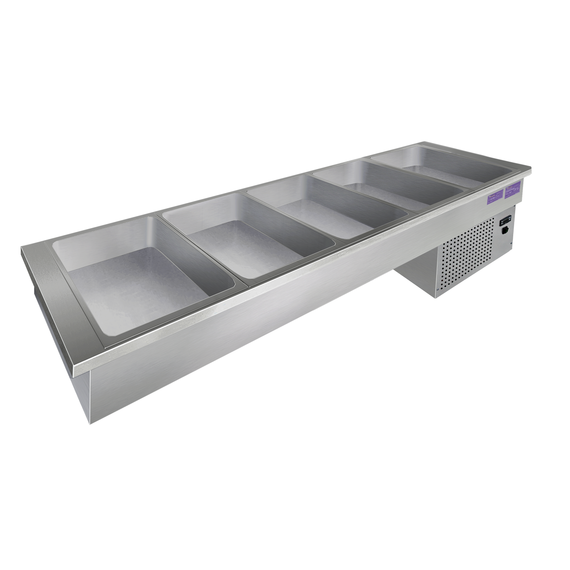 Встраиваемая холодильная ванна выполнена из высококачественной пищевой нержавеющей стали. Снабжена самостоятельной холодильной установкой.