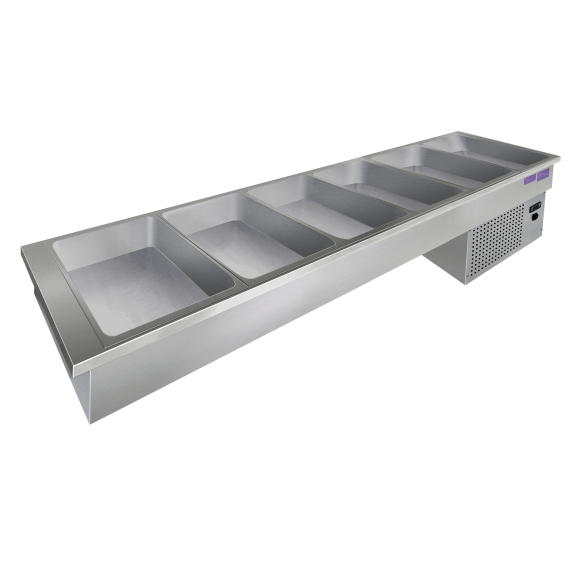 Встраиваемая холодильная ванна выполнена из высококачественной пищевой нержавеющей стали. Снабжена самостоятельной холодильной установкой.
