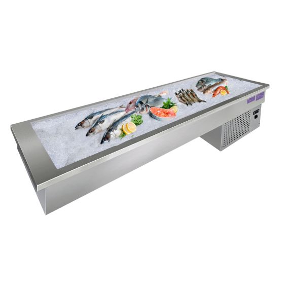 Встраиваемая холодильная ванна для льда выполнена из высококачественной пищевой нержавеющей стали. Снабжена самостоятельной холодильной установкой, имеет статическое охлаждение.