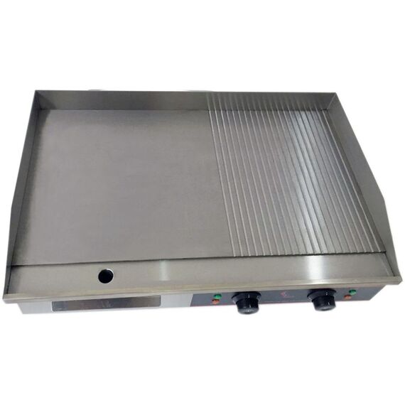 730х515х245 мм, 4,4 кВт, 220 В, комбин. поверхность (2/3 гладкая и 1/3 рифленая), 2 зоны нагрева, темп. режим +50/+300°С, поддон для сбора жира, корпус и пов-сть нерж. сталь