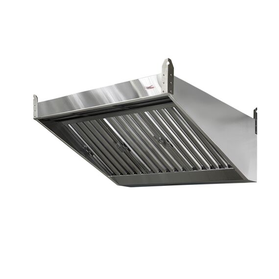 Зонт изготовлен из пищевой нержавеющей стали, имеет одну врезку, оснащен встроенным краном для удаления жира. Лабиринтные фильтры-жироуловители в комплекте.