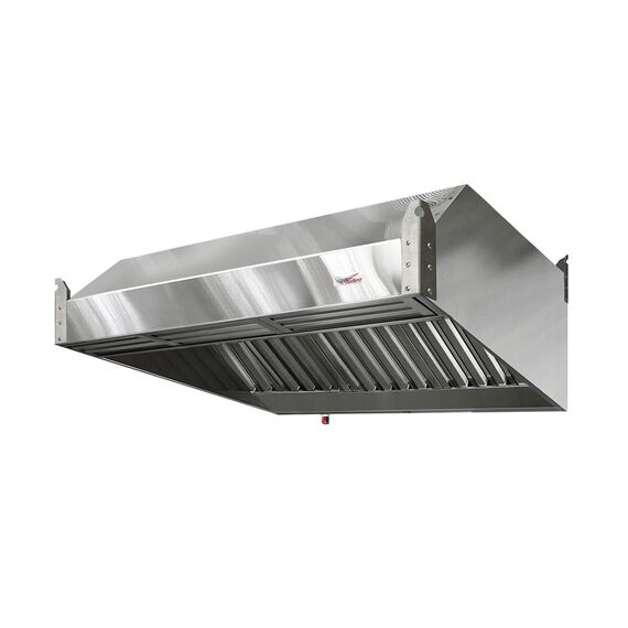 Зонт приточно-вытяжной нержавеющий ЗПВН-03 - зонт пристенный, применяется в случае, когда оборудование расположено у стены и ограничений по высоте потолка нет. Конструкция считается более эффективной за счет глубины кожуха.