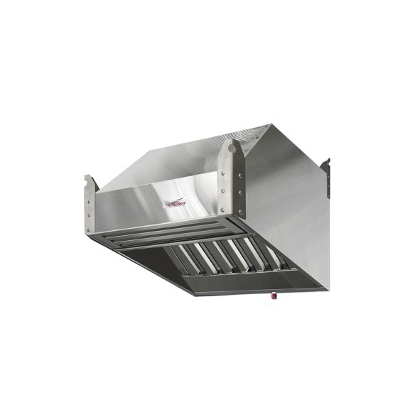 Зонт приточно-вытяжной нержавеющий ЗПВН-03 - зонт пристенный, применяется в случае, когда оборудование расположено у стены и ограничений по высоте потолка нет. Конструкция считается более эффективной за счет глубины кожуха.